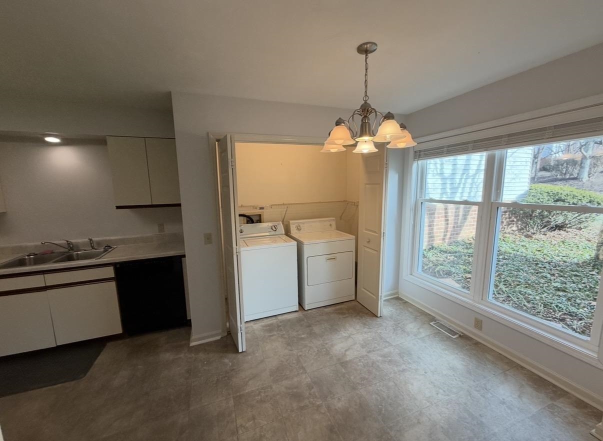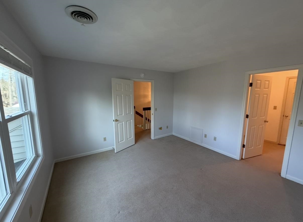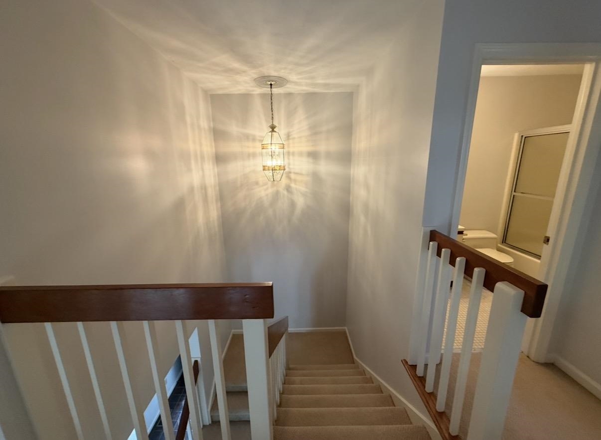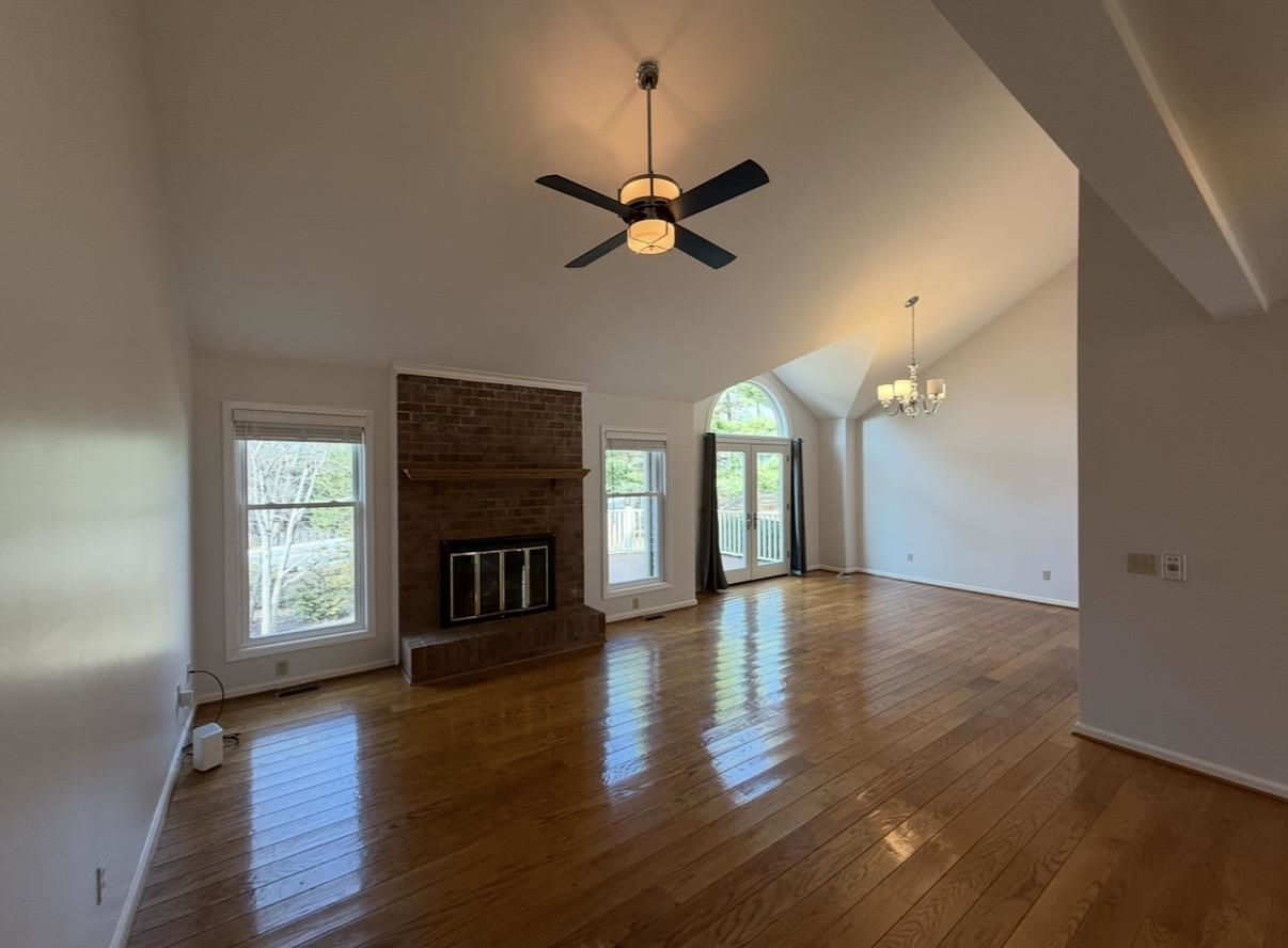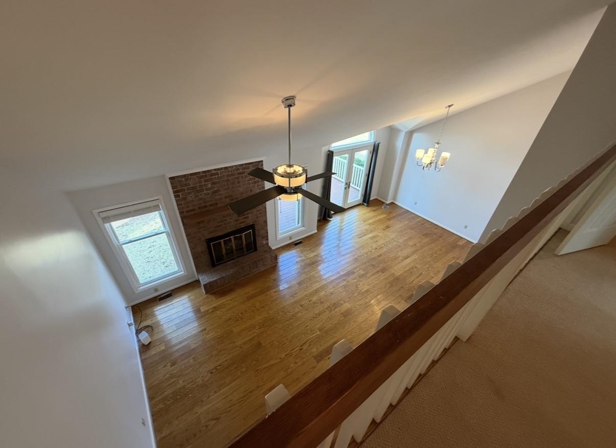 Spacious Living & Dining Rooms with hardwood floors & vaulted ceilings. Large Master Bedroom on Main level with en suite bathroom (separate tub & shower). French doors in Dining Room open out to back deck. Two big bedrooms upstairs with walk-in closets & walk-in access to additional storage in attic.